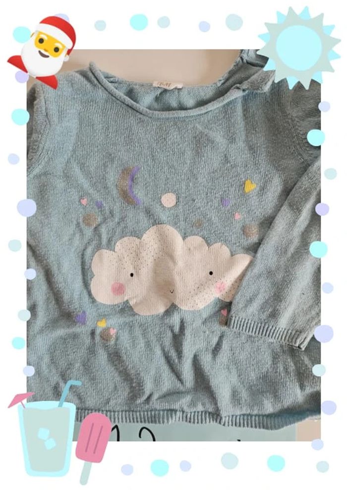pull fille 12 mois bleu avec un nuage - photo numéro 1