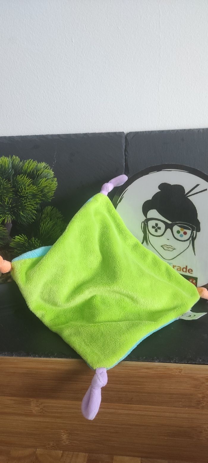 doudou plat éléphant bleu orange u tout petits violet vert Carré Plat Noeuds - photo numéro 2
