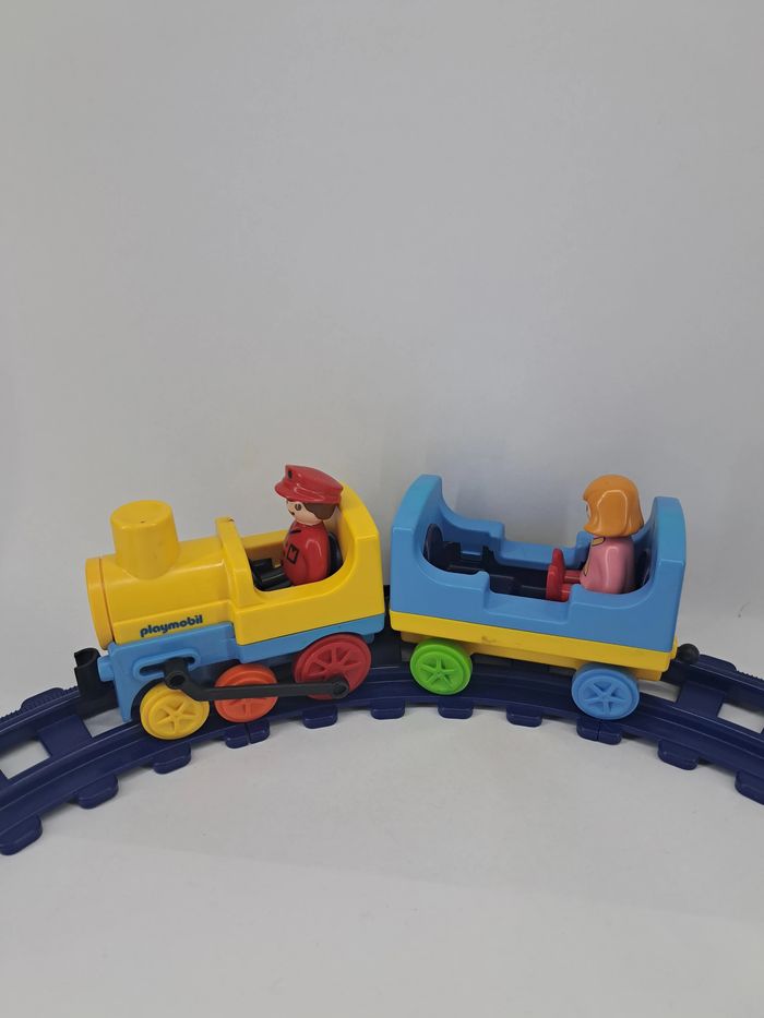Circuit avec deux personnages, une locomotive et un wagon - Personnages Fille & Garçon. Valeur neuf : 45 euros Excellent état, complet. Âge : 18 mois jusqu'à 4 ans #playmobilkkhoe #kkhoe