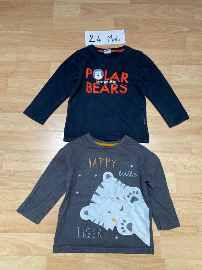 Lot 2 tee-shirts manches longues 24 mois Différentes marques - photo numéro 1