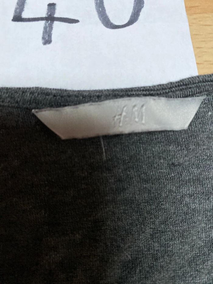 Tee-shirt manches longues Gris foncé Hauteur épaule -ourlet 56 cm Largeur 35 cm T 40 Étiquette de taille coupée H&M TBE