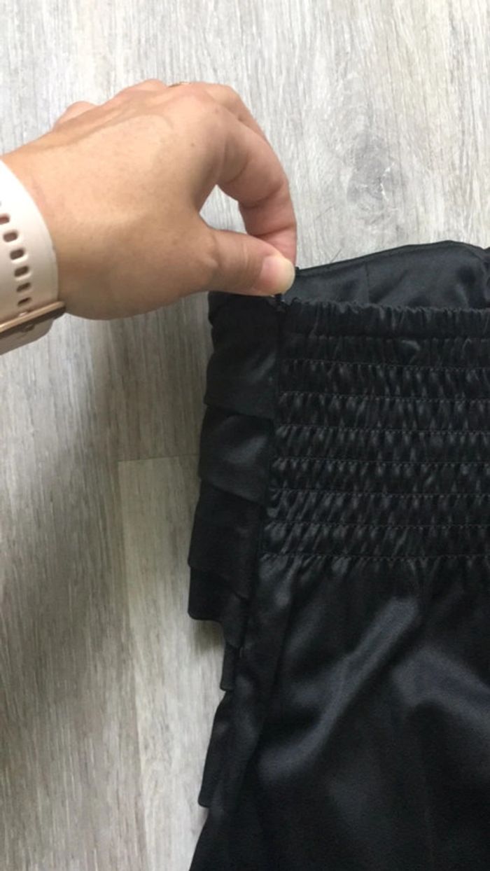 Robe de soirée satin tissu brillant noir bustier Elastic dans le dos donc adaptable et ajusté et fermeture éclair sur le côté pour l’enfiler