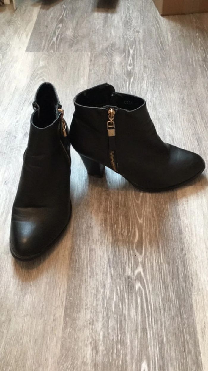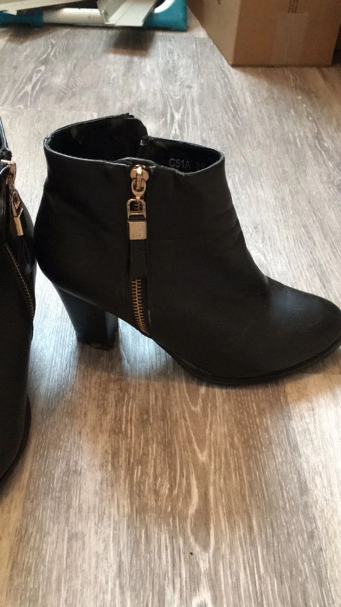 Bottines noir fermeture éclair intérieur qui s’ouvre un extérieur décoratif Talon un peu usé voir photo