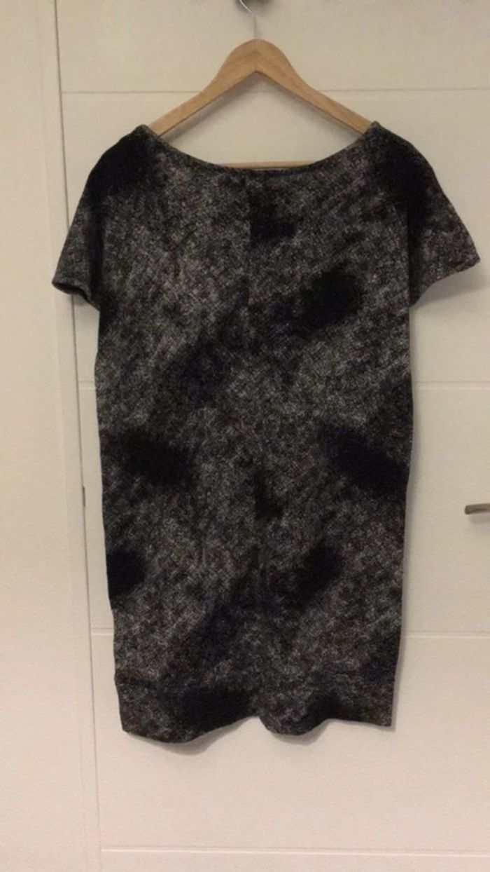 robe tunique en laine toute douce noir et grise manches courtes col V en excellent état très peu porté comme neuve