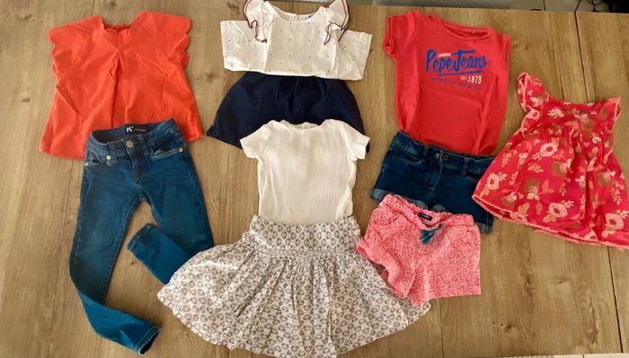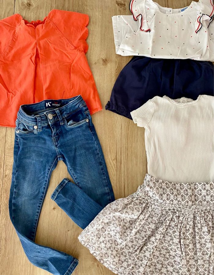 Petit lot #4ansfilledemarie0208 Comprenant au minimum 1 jeans juste essaye kaporal 1 haut pépé jeans 2 haut jacadi 1 short tao 1 jupe cyrillus avec un haut 3 ans sgt major ..