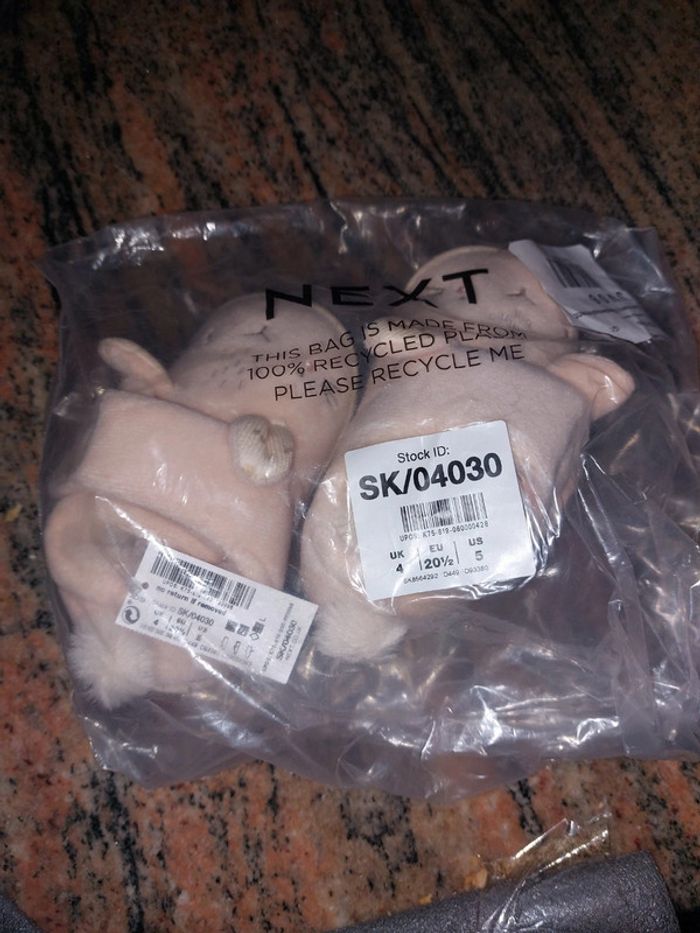 Pantoufles lapin (bien chaudes à l'intérieur) pointure 20.5, marque next. Neuves avec étiquettes
