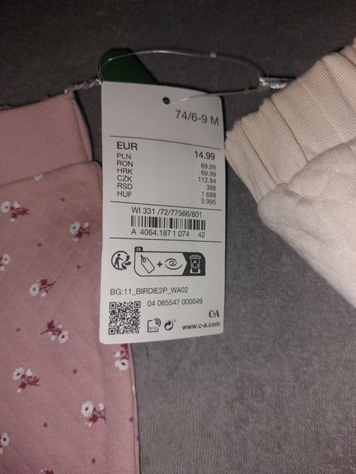 Lot de 2 pantalons de marque c&a, taille 9 mois, neufs avec étiquette