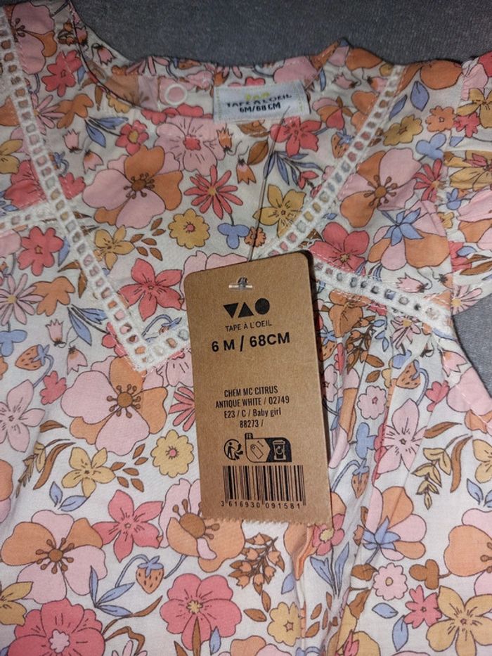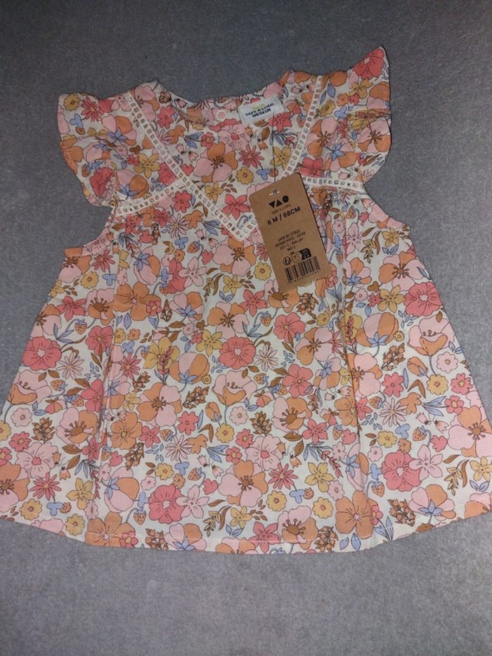 Blouse manches courtes, matière chemisier, taille 6 mois, neuve avec étiquette
