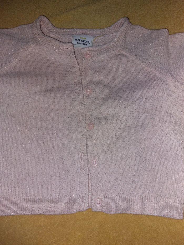 Gilet tape à l'œil, rose un peu pailleté, taille 6 mois