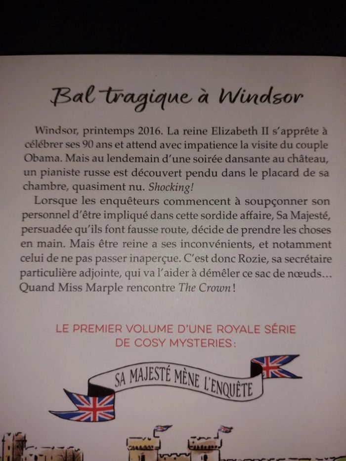 Sa majesté mène l'enquête : bal tragique à Windsor, roman grand format, en très bon état. 348 pages, 380 gr