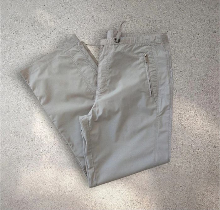 Pantalon gris clair confortable et léger, jambes larges, parfait pour l'été, en excellent état.