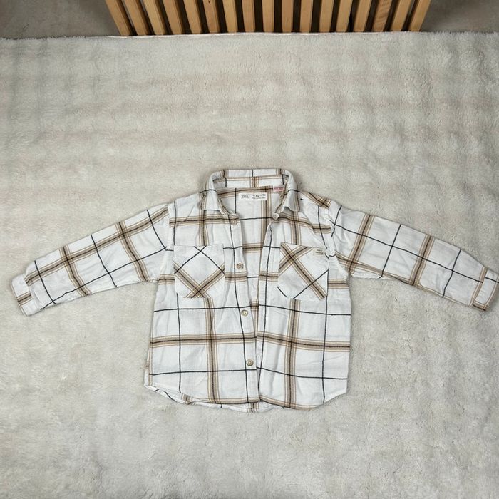 Chemisier Zara à Carreaux Beige et Blanc : Le Look Décontracté et Stylé Parfait ! - photo numéro 1