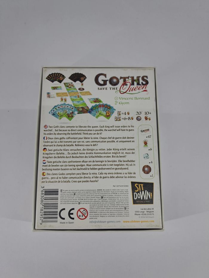Nombres de joueur : 4-8 Âge : 10+ Temps : 15 minutes Ostrogoths et wisigoths avaient su faire taire leurs rivalités en mariant la fille du roi des premiers au roi des seconds. Et tout allait pour le mieux. Jusqu'au jour où de vils brigands enlevèrent la jeune reine. Oubliant leur alliance, les deux souverains se rejetèrent mutuellement la faute de cette disparition et entrèrent à nouveau en guerre tout en essayant de libérer sa fille pour l'un, sa reine pour l'autre. Mais les moyens de communication de l'époque étaient quelque peu imprécis, et rien ne garantissait qu'un ordre donné puisse, dans les faits, être correctement exécuté sur le terrain. Le conflit prit dès lors un aspect plutôt...chaotique. Marque : Sit Down Valeur neuf : 17 euros
