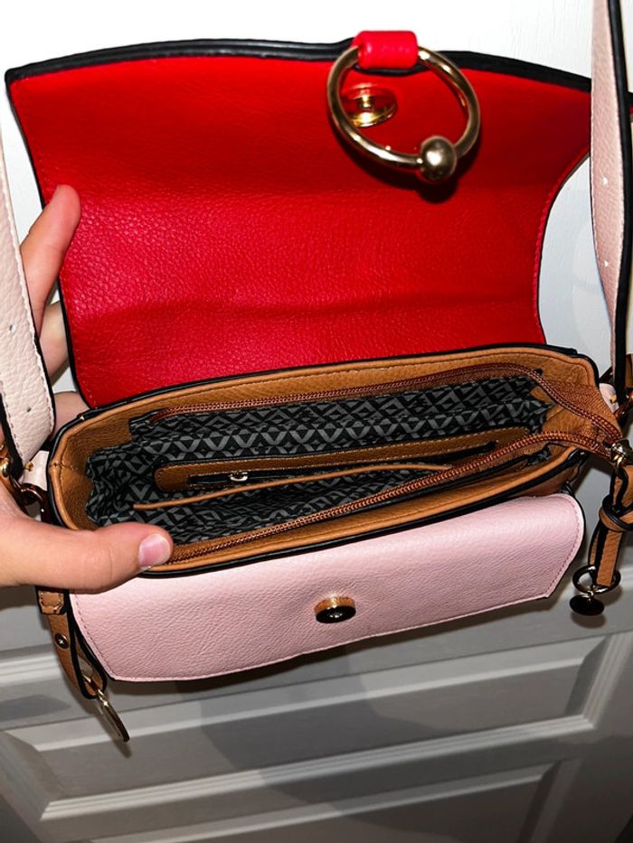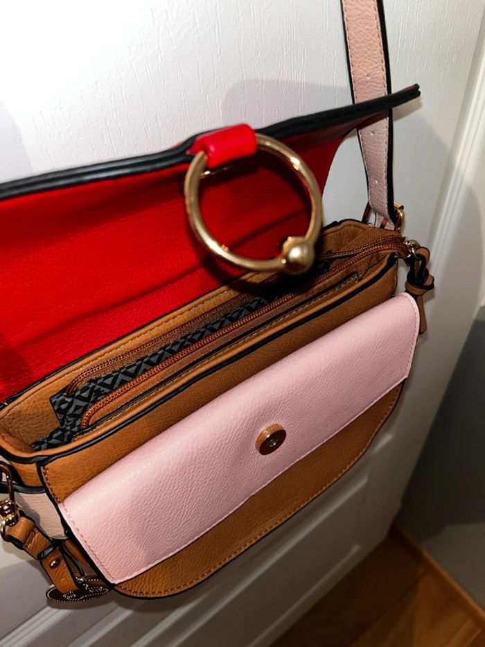 Sac en cuir en bandoulière tricolore, équipé de nombreuses poches, la bandoulière est réglable Neuf, n'a jamais servi #sac #sactricolore #sacenbandouiliere #sacrouge #sacmarron #sacrose #sacbandoulière #sacfemme