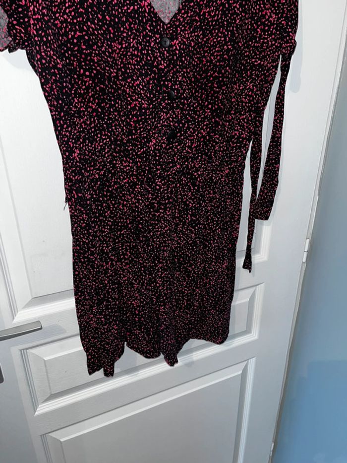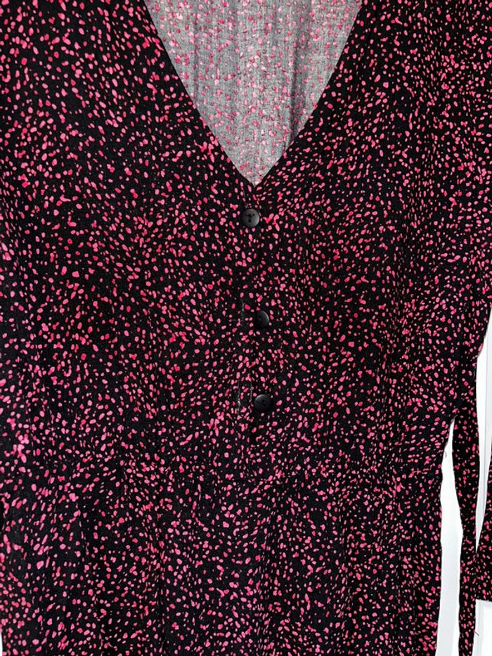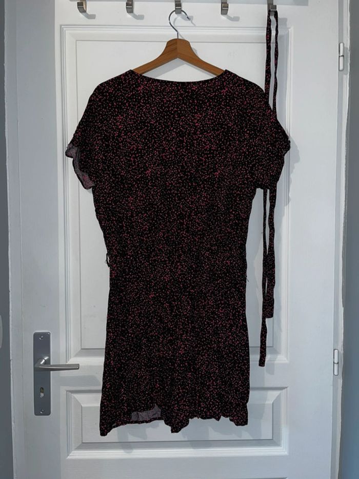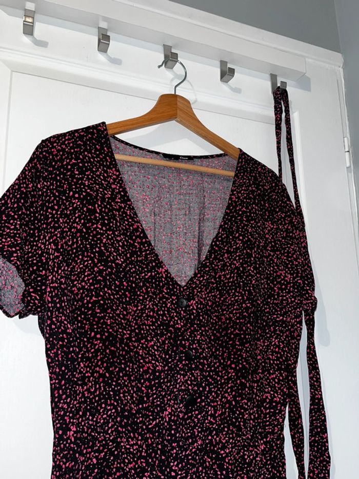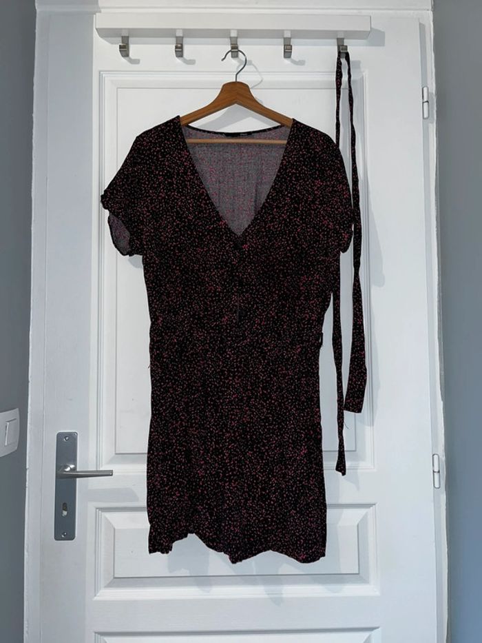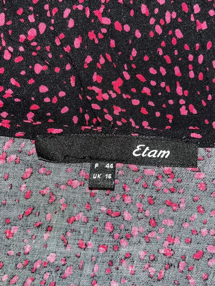 Robe noire et rose col V avec ceinture, Etam Taille L (44 sur l'étiquette mais taille petit) En parfait état, peu porté #robenoireetrose #robeetam #robenoire #robe #robecolv #robeceinture #roberose