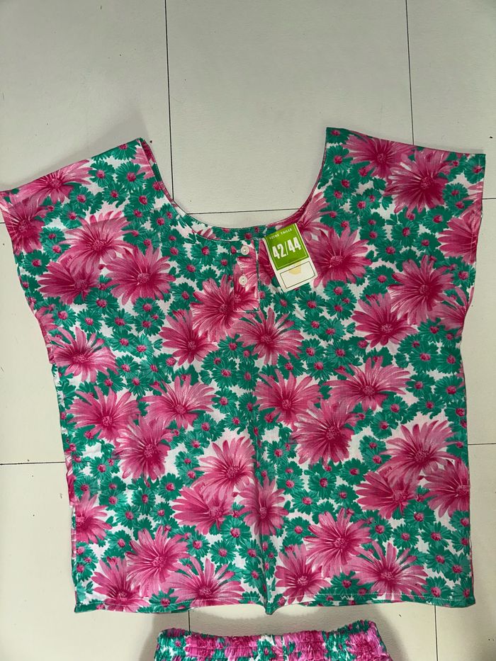 -ensemble tee shirt oversize + jupe crayon a fleur idéale pour l’été. -marque: Auchan, Inextenso. -taille: 42/44 pour le tee shirt (large) et 38/40 pour la jupe. -Neuf avec étiquette.