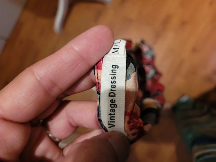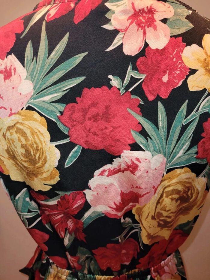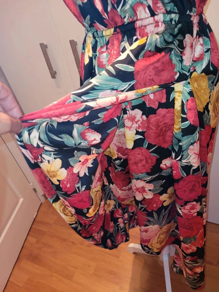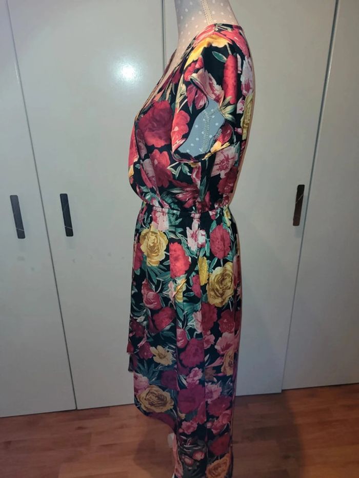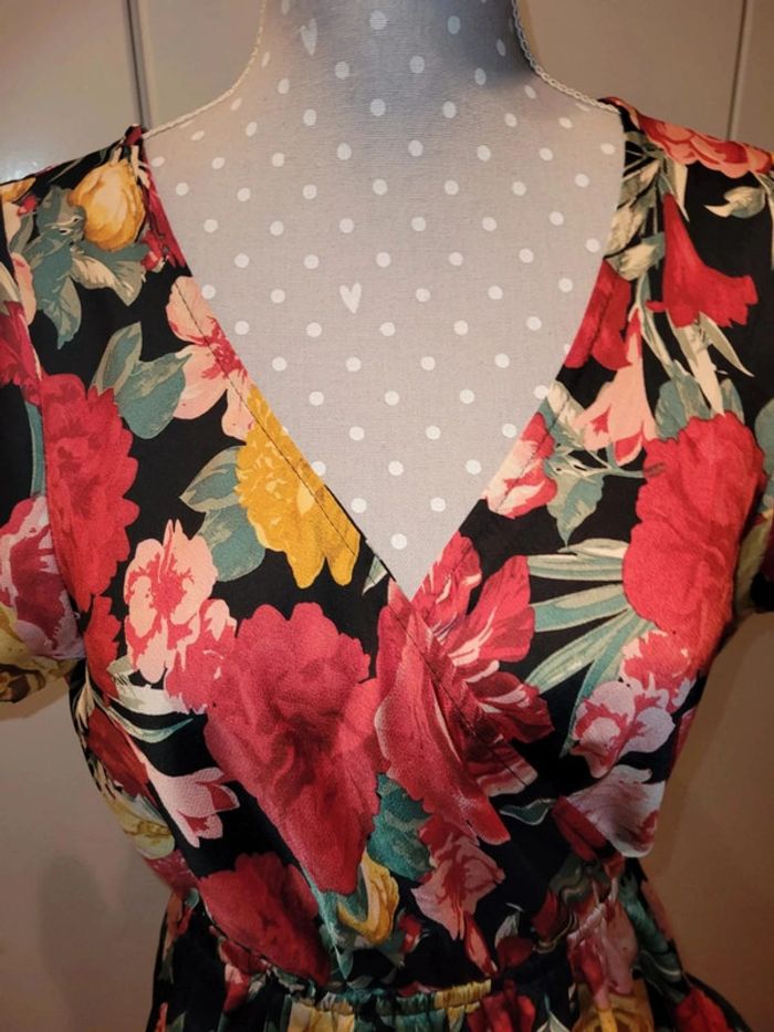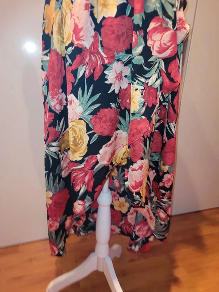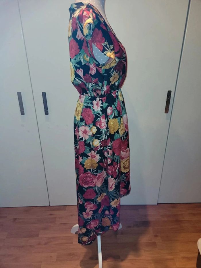 Robe originale et asymétrique fleuri coeur croisé. Le bas de la robe est style portefeuille. Marque vintage dressing, taille L. Elle est longue à l arrière, plus courte devant.