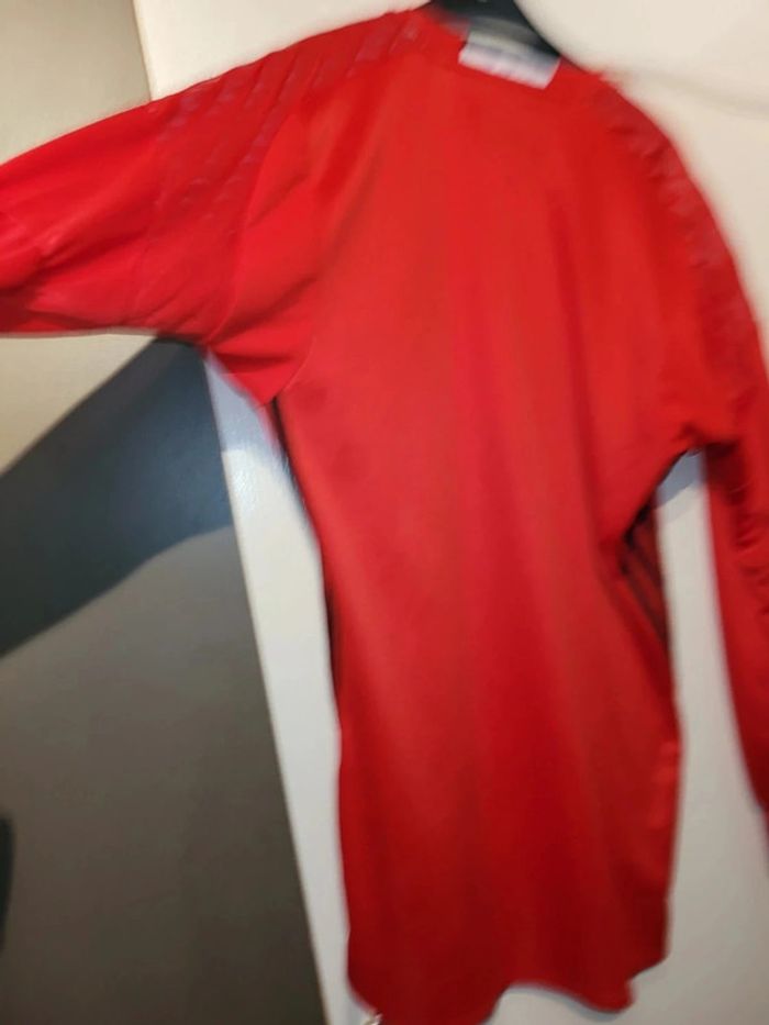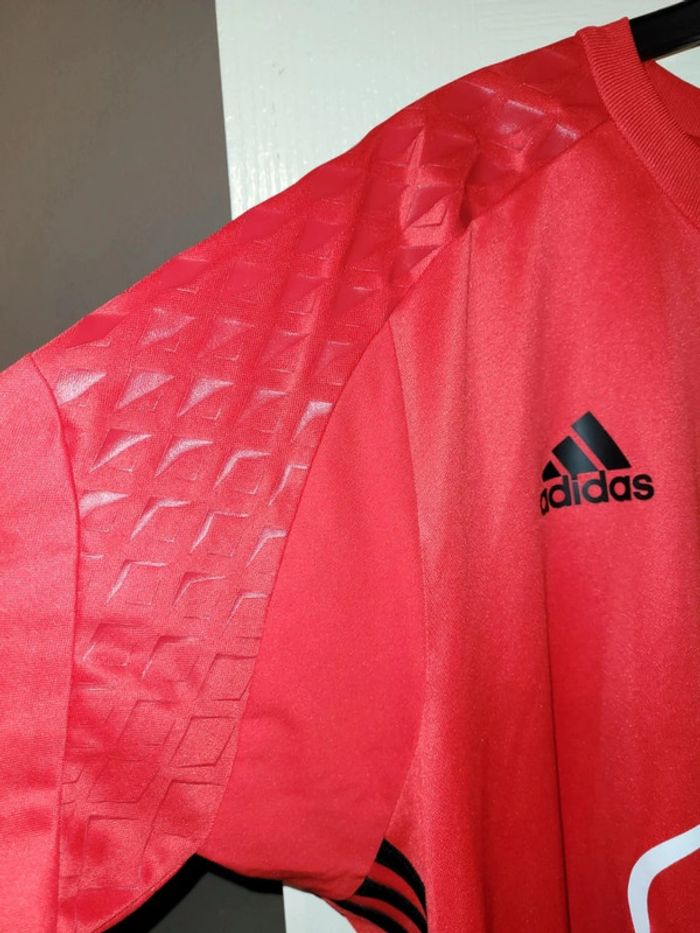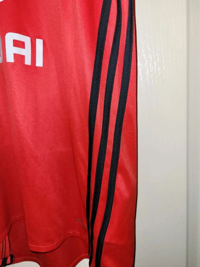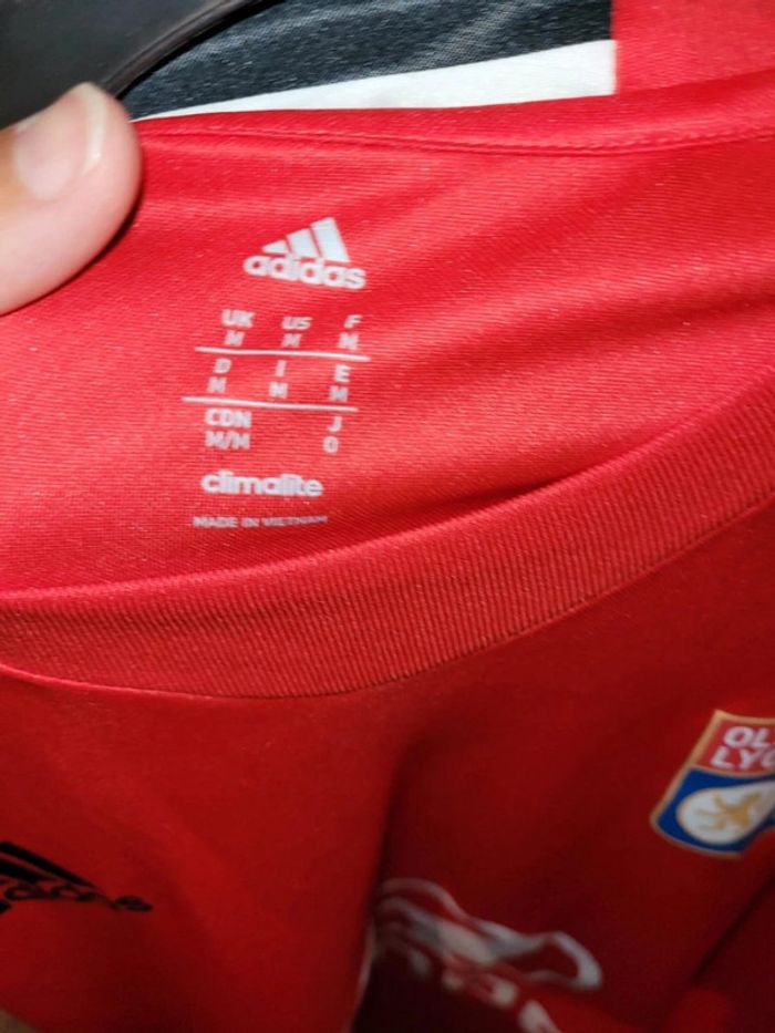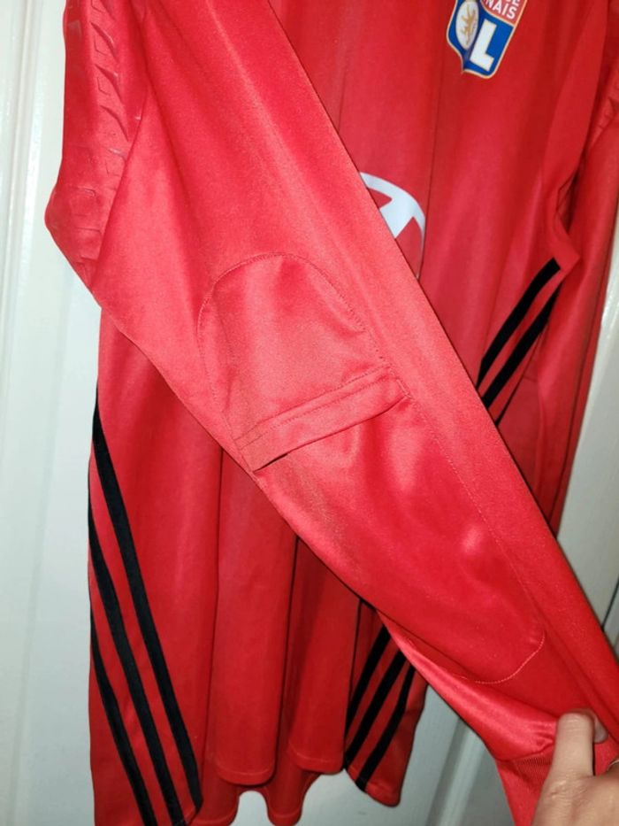 Maillot de foot manches longues de la marque adidas. Équipe olympique lyonnais. En excellent état. Pas d accros. Flocage en très bon état. Petite touche originale au niveau des épaules : flocage en relief.