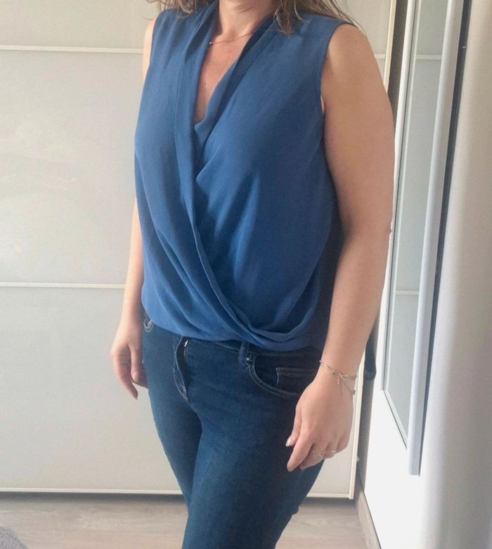 📌 Lot 20% de remise pour l'achat de 5 articles, suite ... Blouse sans manche, bleu, en voile non transparents, ➡️Largeur à plat sous les bras  50 cm ➡️Longueur 52 cm ➡️ étiquette composition manquante ⭐ Excellent état ✈Envoi rapide des colis 💗 Abonnez vous à mon profil, nombreux articles ajoutés régulièrement ! 🌸 Tapez Laetitresors pour voir mes annonces #laetitresors_blouse40 #blouse #atmosphère #bleu #debardeur #bretelle #froncé #fluide #leger #été #resseré #laetitresors