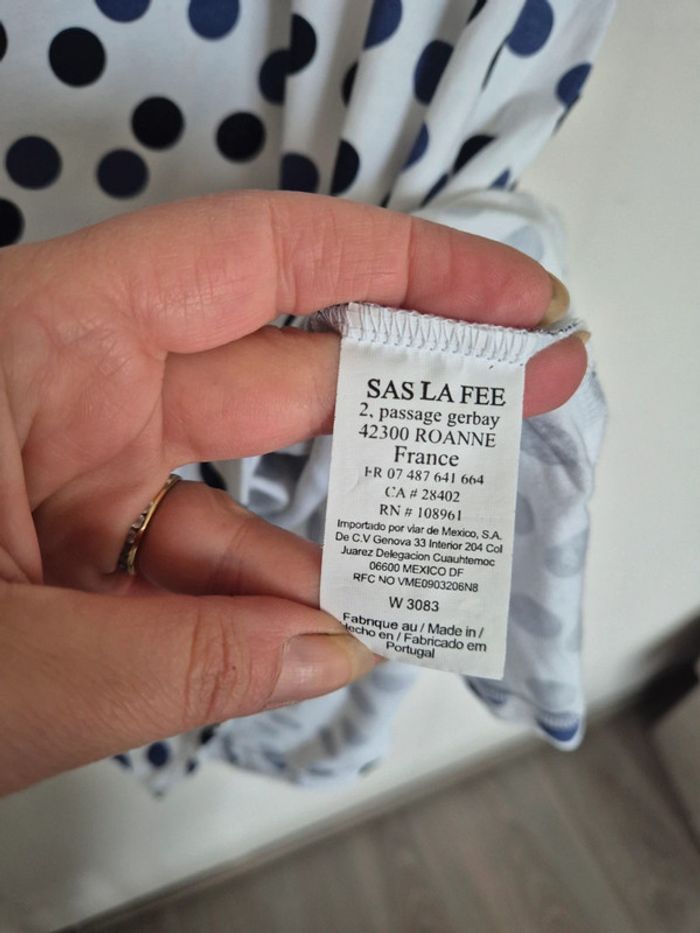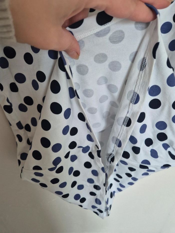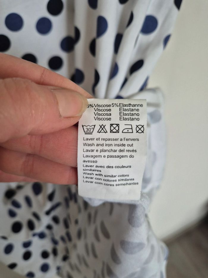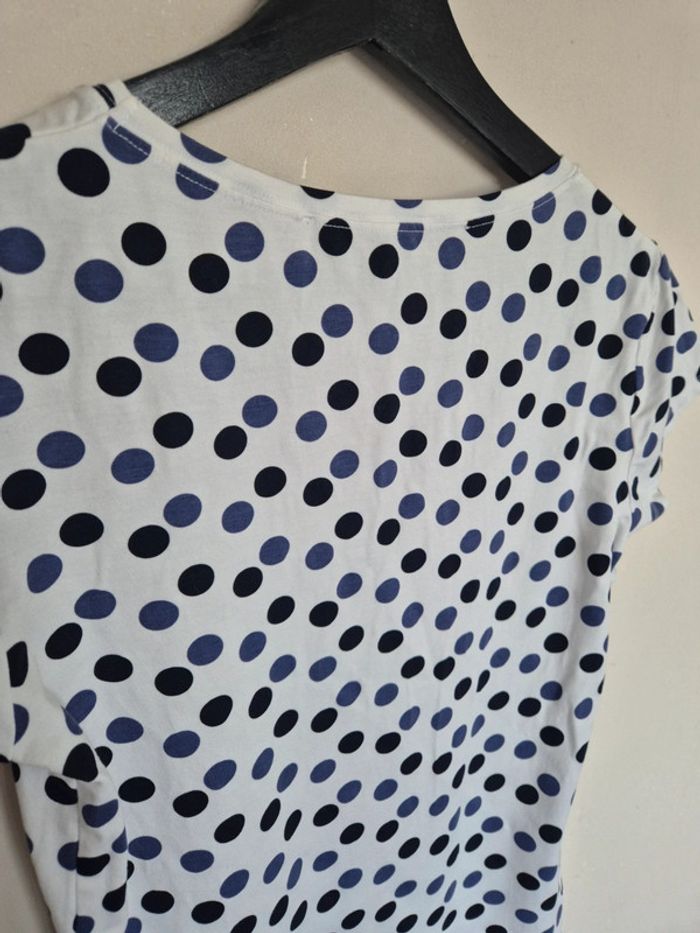 📌 Lot 20% de remise pour l'achat de 5 articles, suite ... T-shirt blanc avec des rond bleu et noir, manche courte, ➡️Largeur à plat sous les bras  50 cm ➡️Longueur 58 cm ➡️95% viscose 5% élasthanne ⭐ Excellent état ✈Envoi rapide des colis 💗 Abonnez vous à mon profil, nombreux articles ajoutés régulièrement ! 🌸 Tapez Laetitresors pour voir mes annonces #laetitresors_tshirt40 #tshirt #la #fee #maraboutée #rond #bleu #noir #manche #courte #top #laetitresors
