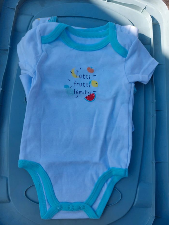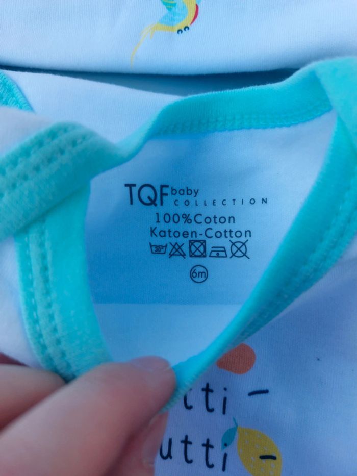 Lot de 3 bodys manches courtes de marque TQF, taille 6 mois, jamais portés