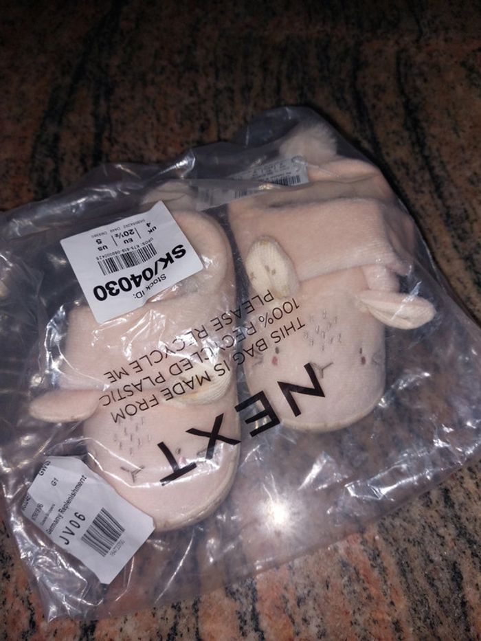 Pantoufles lapin (bien chaudes à l'intérieur) pointure 20.5, marque next. Neuves avec étiquettes
