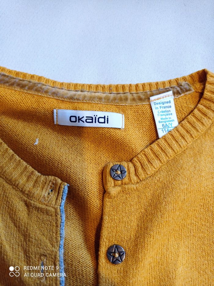 Gilet moutarde Okaïdi 6ans Bien porté mais reste en très bon etat Maison non fumeurs 🚭 et sans animaux 🙈 % 💸Réduction activée dès 2articles. 💰 Possibilité de passer par une autre plateforme de vente