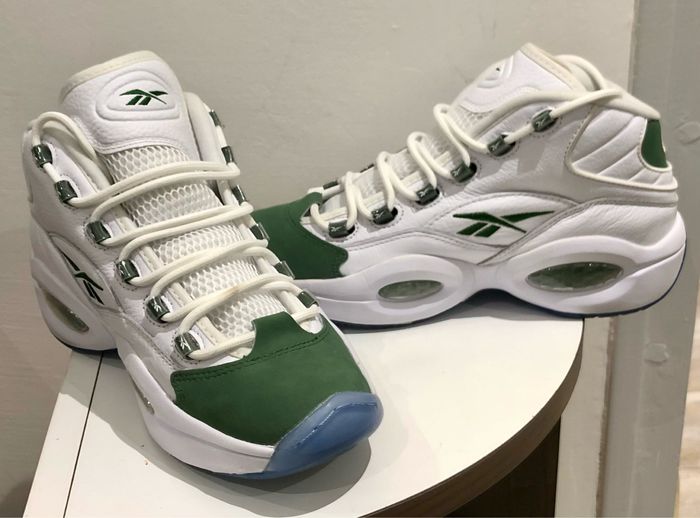 Reebok questions mid Iverson neuve porté 1 seule fois état impeccable ! Très belle basket . Difficile voir impossible de les trouver en boutique ou en état neuf . Pointure 42