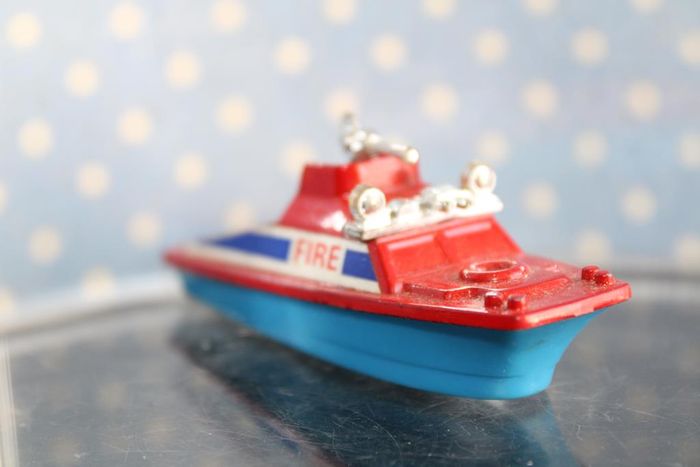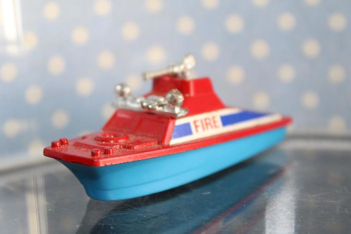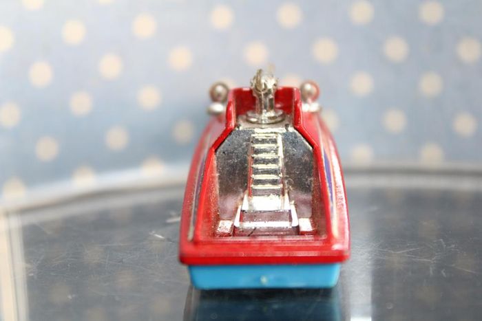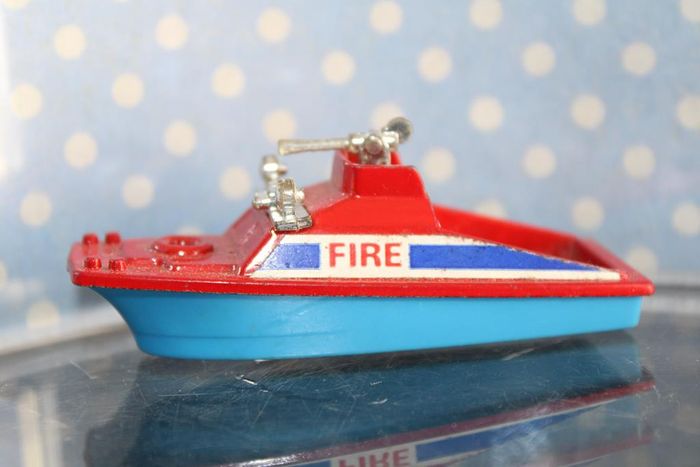 Canot miniature à moteur des pompiers Echelle : Environ 1:96 Série : Superfast Couleur : Rouge Coque : Plastique bleu Fabricant : Corgi Année de production : 1976 En très bon état. Pas de manque de peinture. Stickers en très bon état qui ne se décollent pas Aurait besoin d'un dépoussièrage Le chrome est lègèrement terni Réponds avec plaisir aux demandes d'informations complémentairre Réponse rapide envoi soigné dans les meilleurs délais