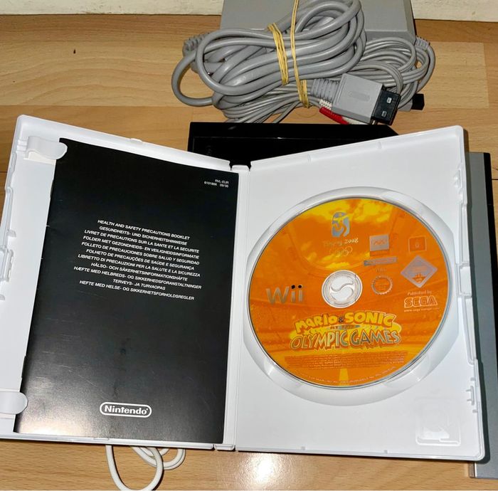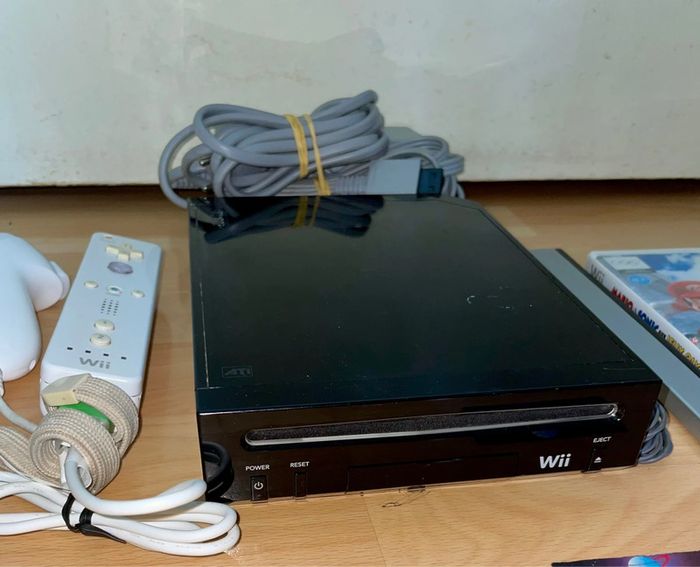 Console avec touts les accessoires,avec 1 jeu Megamind légère micro rayure, manette Wimote Nunchuk Blanc, câble sensor bar! Édition noire Version 2 sans ports manette Gamecube La console et la manette sont en bon état! Malgré quelque rayure et trace d’usage Tout est officiel de marque Nintendo tout fonctionne parfaitement