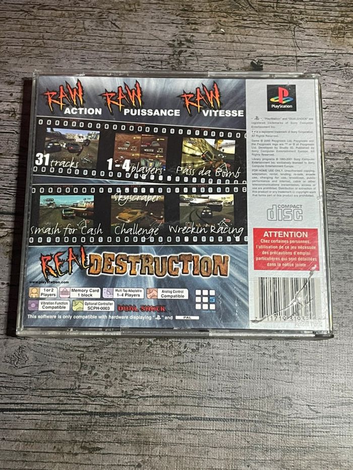 Destruction derby raw Jeu PS1 Sans jaquette avant Platinum Sony - photo numéro 3