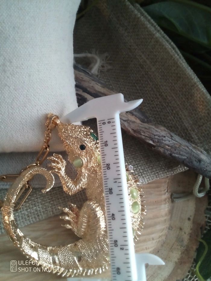 Collier iguane et pierres naturelles oeil de chat vert pomme - photo numéro 4