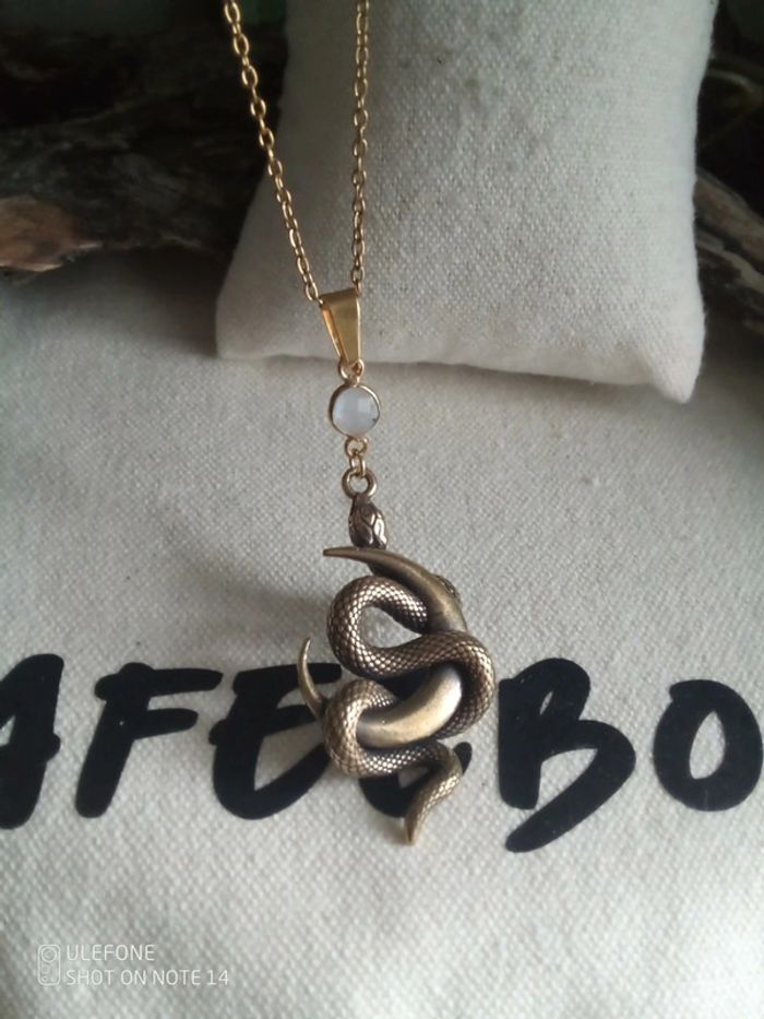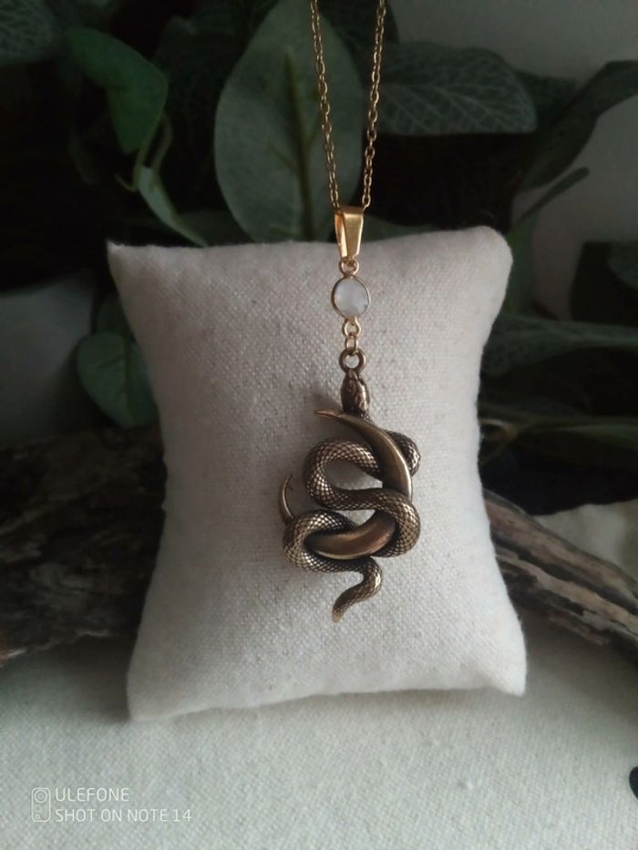 Collier bohème lune serpent pierre de lune - photo numéro 1