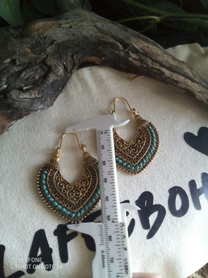 Boucles d'oreilles bohèmes orientales et fil turquoise - photo numéro 2