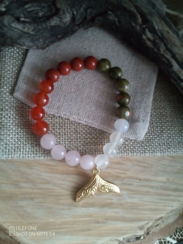 Bracelet pierres naturelles semi précieuses et queue de baleine - photo numéro 1