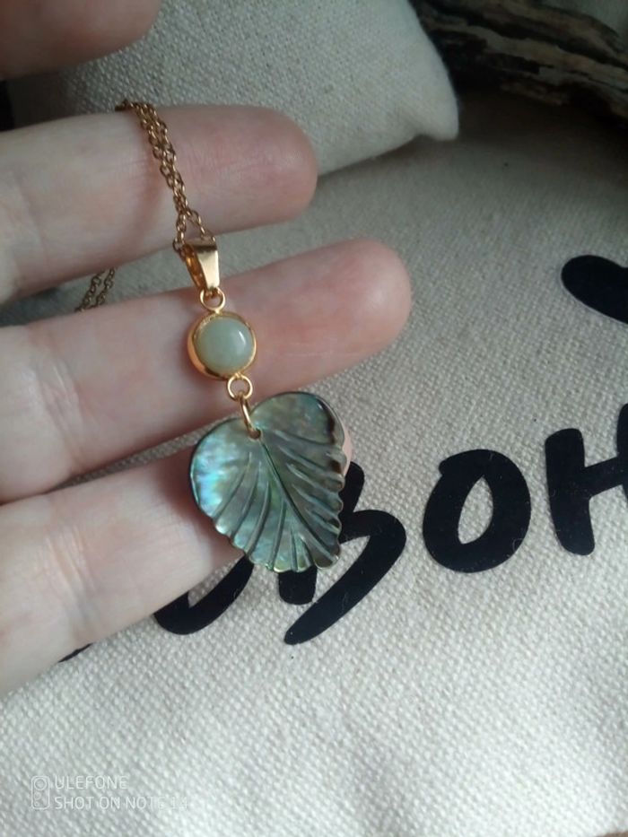 Collier feuille en abalone, connecteur en pierre d'aventurine - photo numéro 1