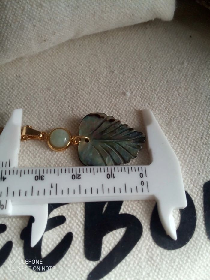 Collier feuille en abalone, connecteur en pierre d'aventurine - photo numéro 2