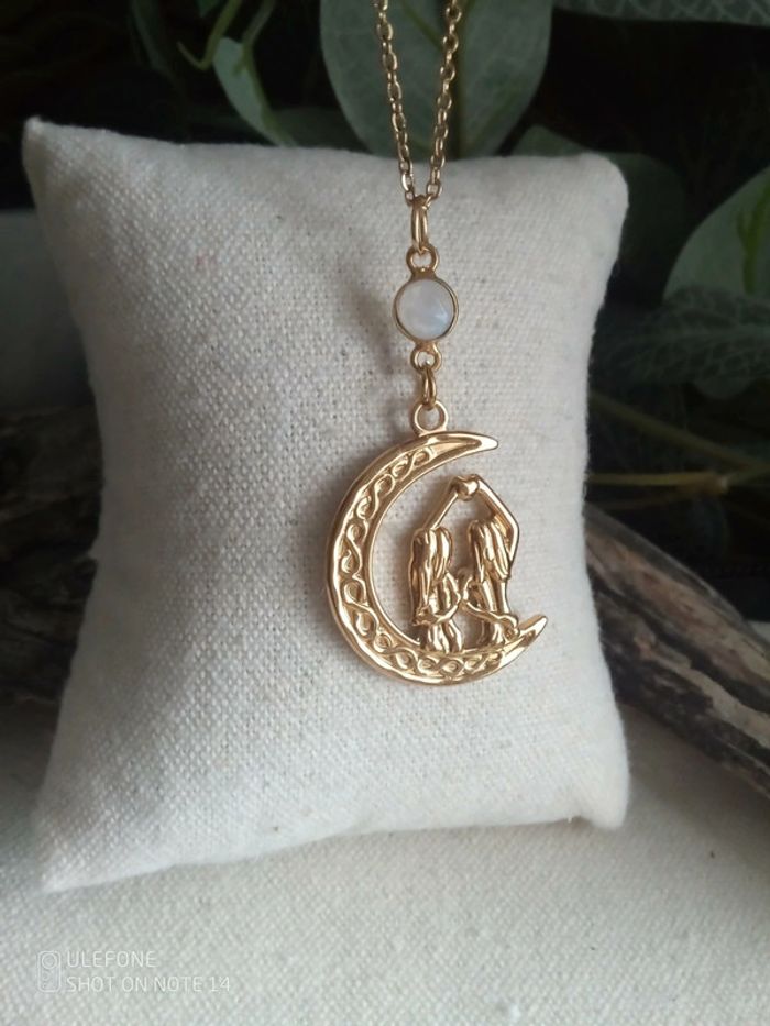 Collier 2 meilleures amies sur la lune et pierre de lune - photo numéro 1