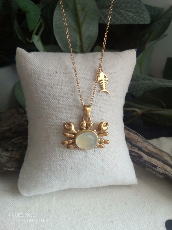 Collier crabe pierre Aqua calcédoine naturelle - photo numéro 1