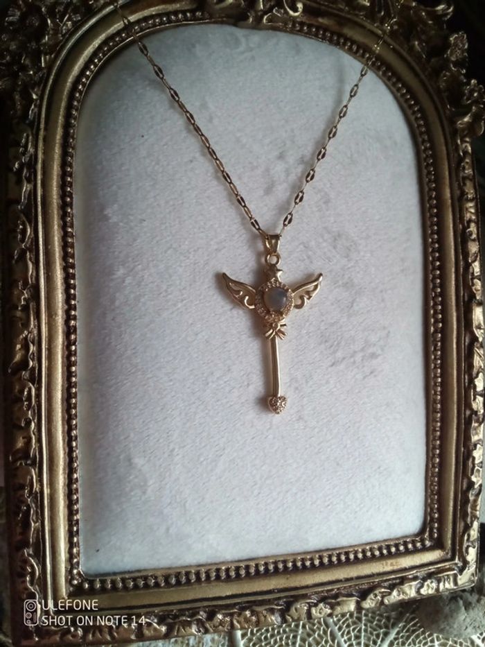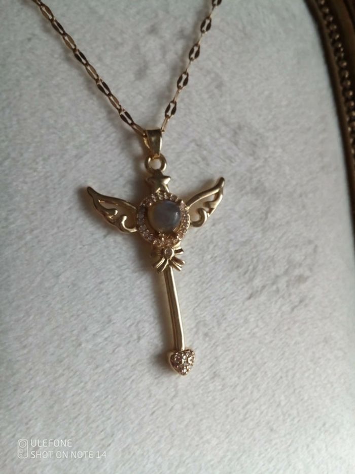 Collier clé ailée avec pierres de labradorite - photo numéro 1