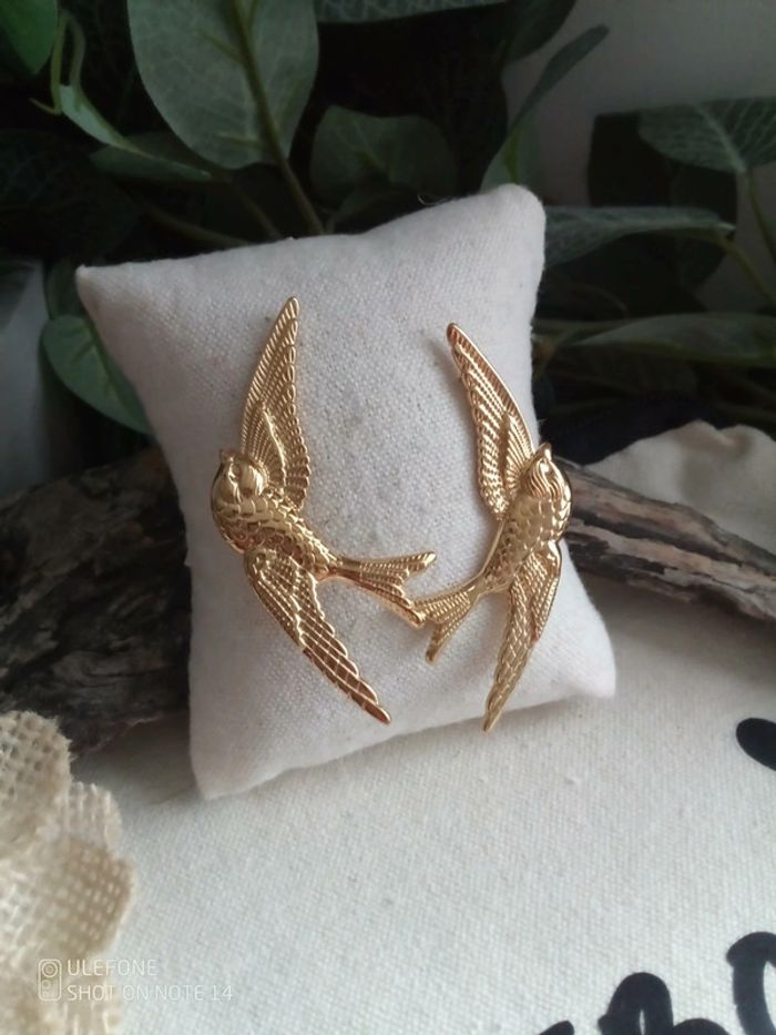 Boucles d'oreilles hirondelles dorées - photo numéro 1