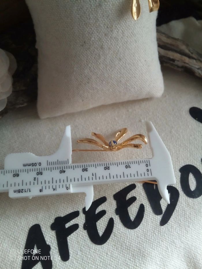 Boucles d'oreilles fleurs dorées et pierres de kyanite naturelles - photo numéro 3
