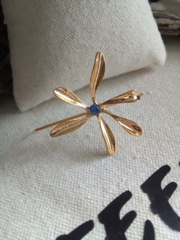 Boucles d'oreilles fleurs dorées et pierres de kyanite naturelles - photo numéro 1