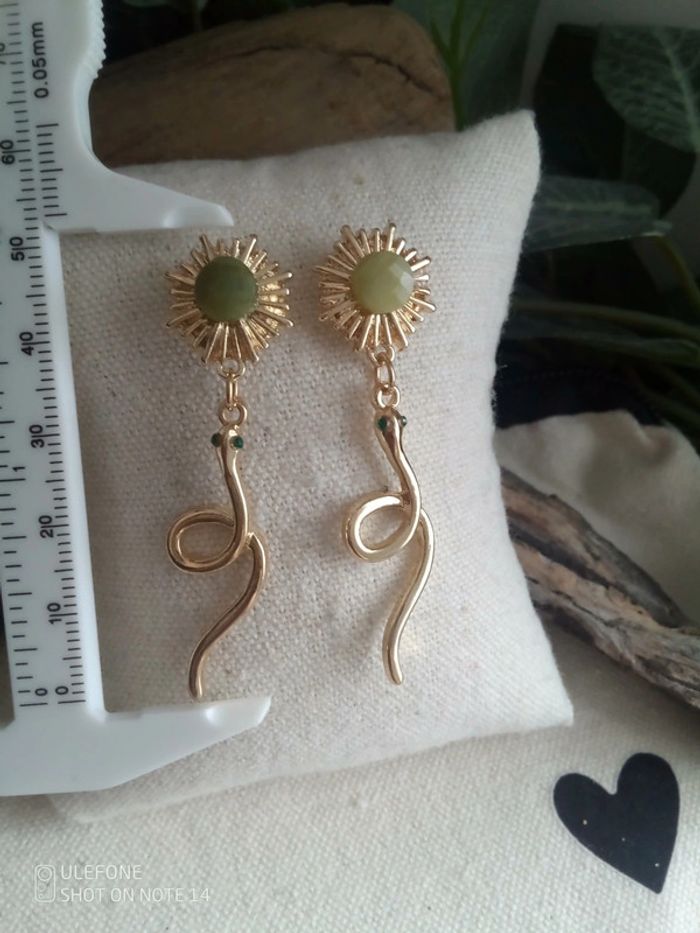 Boucles d'oreilles serpent avec pierres naturelles de jade - photo numéro 1