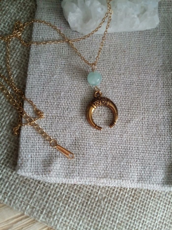 Collier bohemia lune et pierre d'angélite naturelle - photo numéro 1