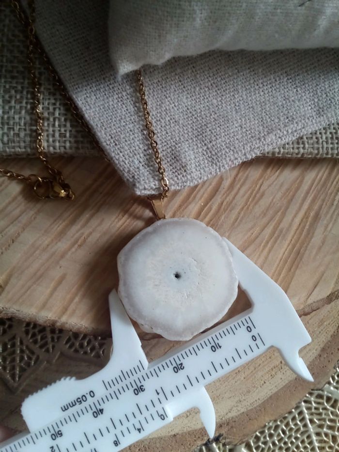 Collier pendentif en pierre naturelle d'agate blanche - photo numéro 2