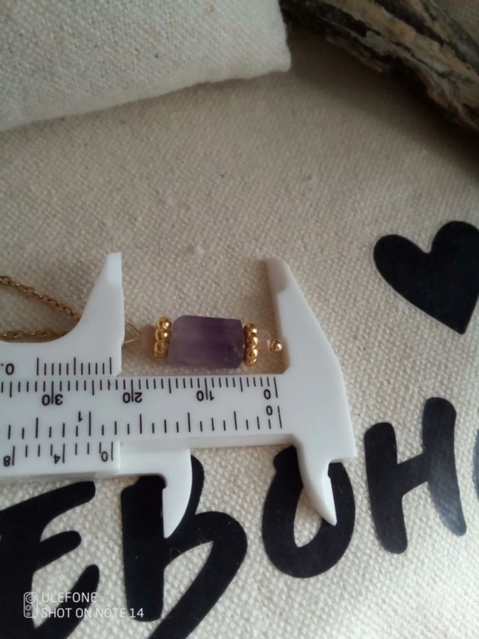 Collier talisman en pierres d'améthyste et pierres du soleil. - photo numéro 2