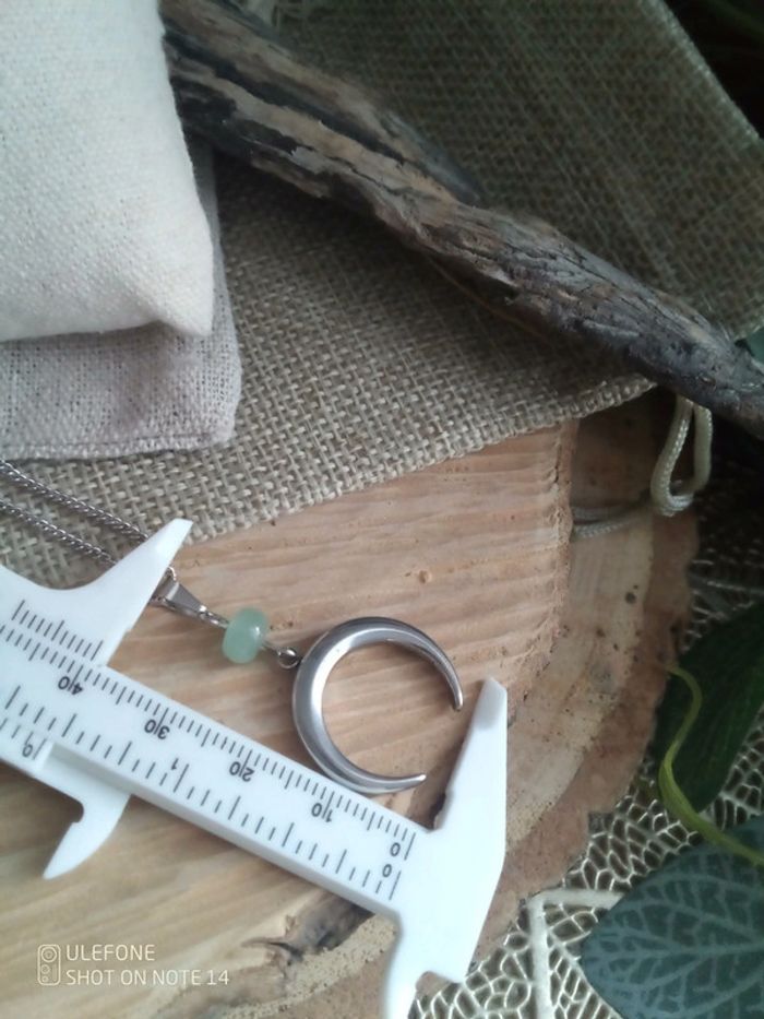 Collier lune argentée et pierre d'aventurine 💚. - photo numéro 2