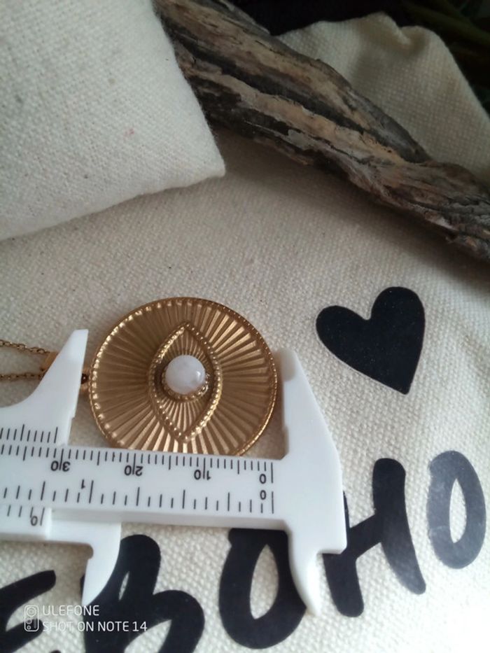 Collier pendentif oeil pierre de lune naturelle - photo numéro 2