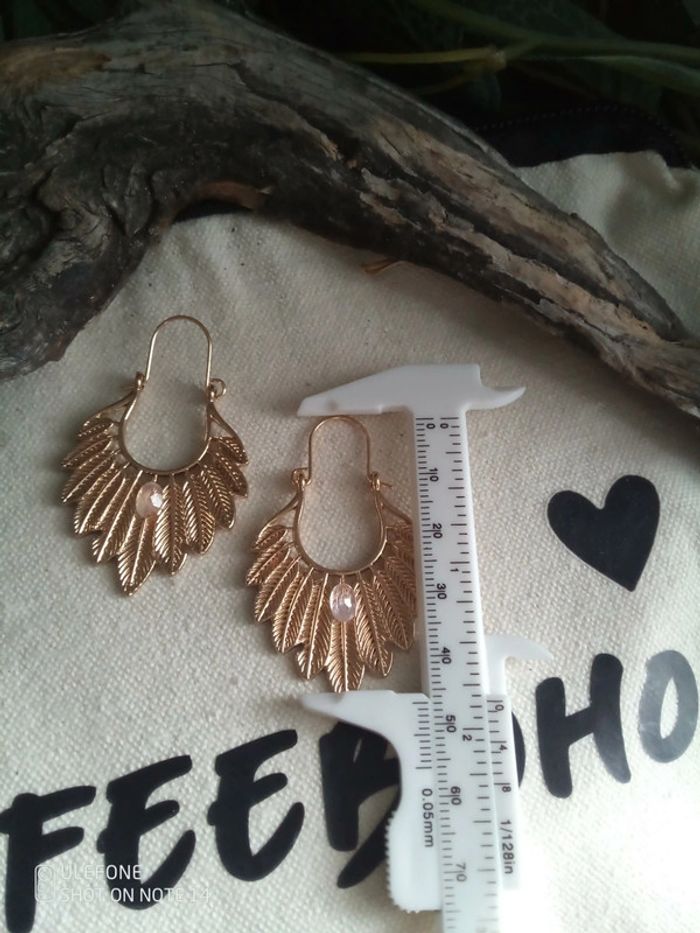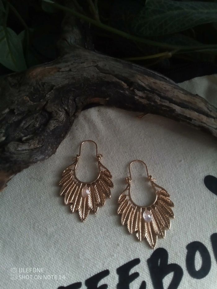 Créoles plumes dorées et pierres de lune - photo numéro 1